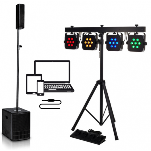 Notre pack sonorisation et éclairage pour 20 personnes est idéal chez vous ou dans une petite salle. Il sera parfait pour vos anniversaires, baptêmes, soirées privées...